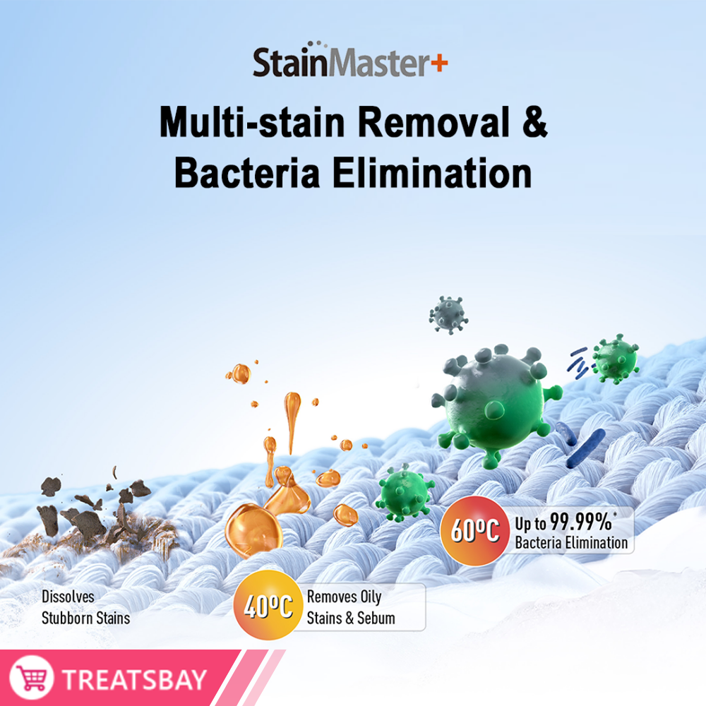 · StainMaster+ eliminates multi-stain and bacteria with hot wash